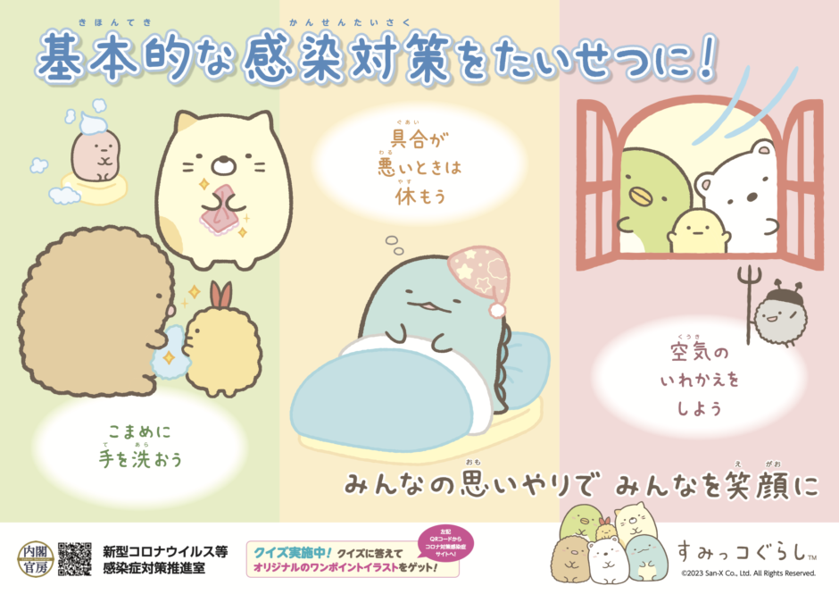 ・手に触れるものの消毒、手指消毒、換気はこれまでと同様に行います。