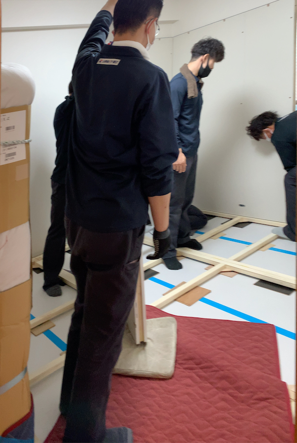 さかのぼって急遽、前日の夕方から防音室の部材を運んでおく作戦となり、想像以上の量の部材でびっくり。そりゃグランドピアノの音をひそひそ話程度まで遮音するとなるとこれだけの部材が必要よね、としみじみ思いました。